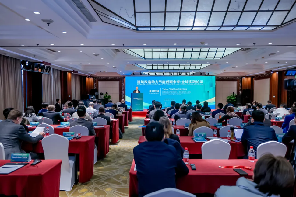为了解国际社会在建筑能效提升方面的最新进展,分享中国建筑领域节能降碳的政策措施和经验做法,展示中国在建筑节能和可再生能源应用等领域取得的成绩,并积极推动中国与世界各国及相关国际组织的合作,10月16日至17日,受住房城乡建设部标准定额司委托,由国家建筑绿色低碳技术创新中心(简称国创中心)、住房城乡建设部科技与产业化发展中心、中国质量认证中心、国际能效中心和中国建设科技有限公司(简称中国建科)共同主办的“建筑改造助力节能低碳未来:全球实践论坛”在北京成功举办。住房城乡建设部标准定额司一级巡视员白正盛,欧盟能源总司首席顾问、国际能效中心主席Tudor Constantinescu,中国建科董事长、国创中心主任孙英,中国质量认证中心主任刘江出席论坛开幕式并致辞。来自欧盟委员会、法国、德国、哈萨克斯坦、卢森堡、沙特阿拉伯和澳大利亚等政府代表,国际能源署、联合国开发计划署(开发署)、世界资源研究所、中国能源基金会等国际组织代表,住房城乡建设主管部门,清华大学、哈尔滨工业大学、广东美的暖通空调设备有限公司、格兰富(中国)投资有限公司、中国建筑第八工程局有限公司、港华投资有限公司等国内科研院所、知名企业的中方代表近200人参加论坛及相关活动,聚焦政策、项目和融资工具等方面的实践经验,交流现有技术应用成果,分享项目案例,探讨新技术研发及不同场景的适用性。