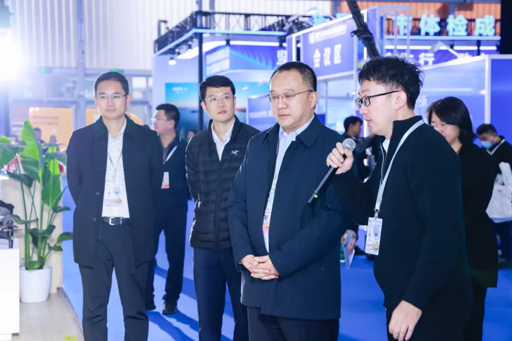 住房城乡建设部有关负责同志到访中国建科展台进行调研参观,中国建科党委副书记、总裁范圣权陪同参观。