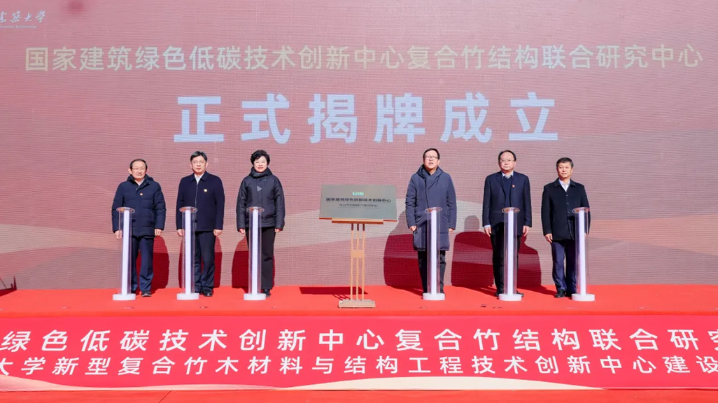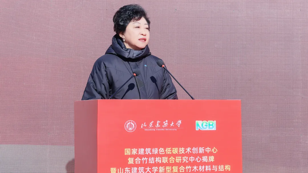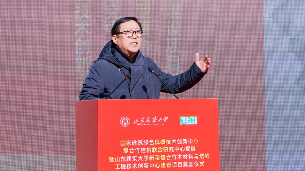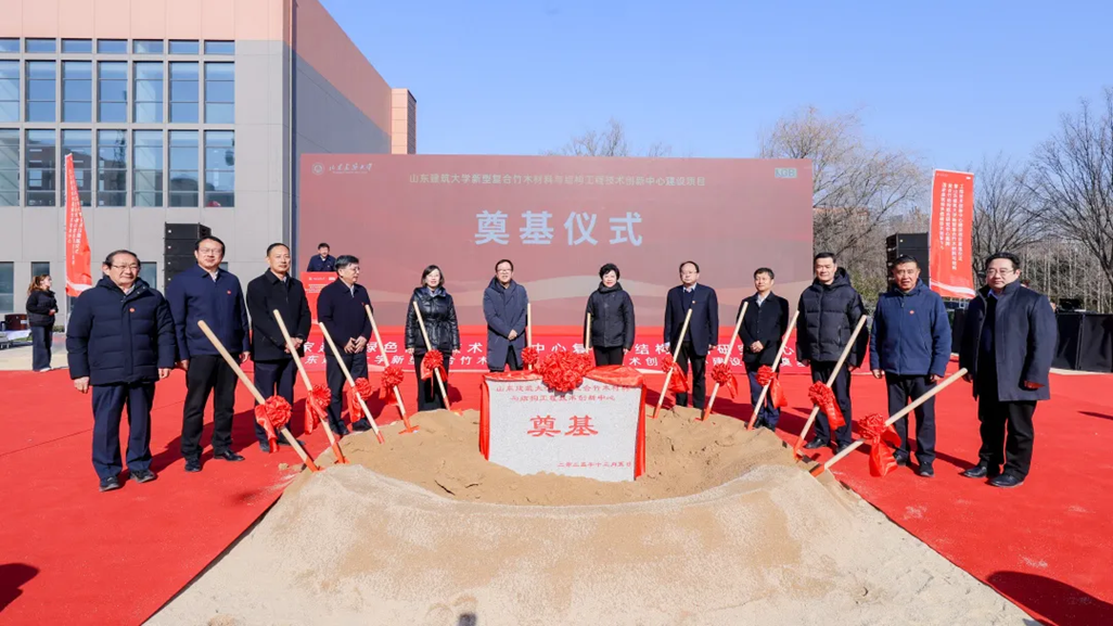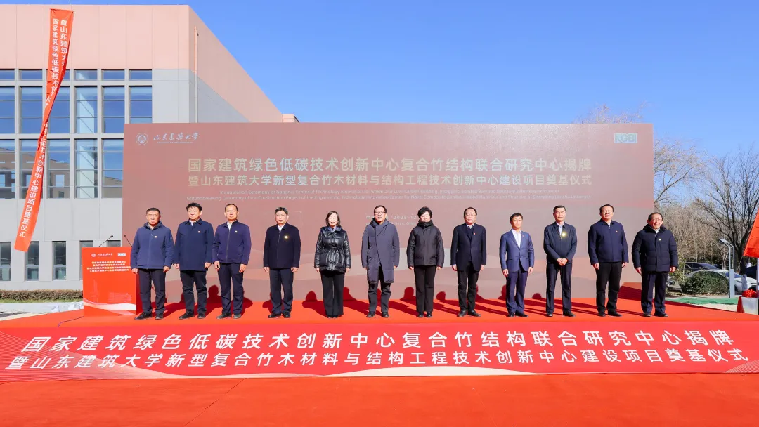 为深入贯彻落实习近平总书记关于科技创新的重要论述,积极服务我国“双碳”战略,推动建筑绿色低碳技术发展,12月5日,国家建筑绿色低碳技术创新中心(简称国创中心)复合竹结构联合研究中心(以下简称联合研究中心)揭牌仪式暨山东建筑大学新型复合竹木材料与结构工程技术创新中心建设项目奠基仪式在山东省济南市成功举行。中国建科党委书记、董事长、国创中心主任孙英,山东省住房和城乡建设厅总工程师王强,山东建筑大学党委书记杨景波出席活动并致辞。中国工程院院士、中国建科首席科学家、国创中心首席科学家崔愷,山东建筑大学党委副书记、校长于德湖,山东省教育厅科技处二级调研员矫立峰,国创中心副主任孙金颖,济南市教育局总督学马炳光,山东建筑大学副校长成强,山东省住房和城乡建设厅节能科技处副处长陈恒亮,山东建筑大学教授张鑫,济南市教育局高校联络处干部孔倩等领导和嘉宾参加活动。山东建筑大学副校长邱立平主持仪式。